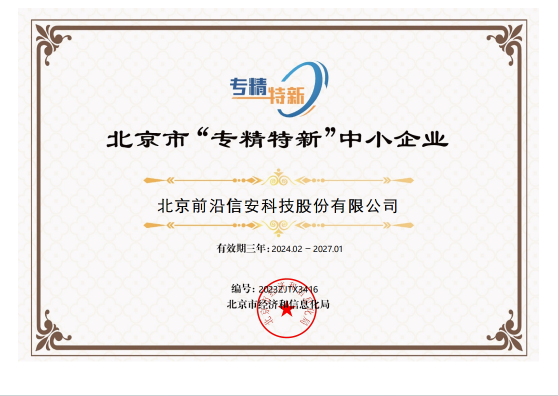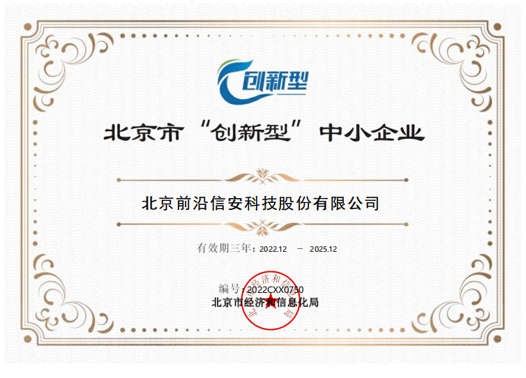 2023年4月,按照工业和信息化部《优质中小企业梯度培育管理暂行办法》(工信部企业〔2022〕63号)、《北京市优质中小企业梯度管理实施细则》要求,天行官方在线入口取得了2023年北京市“创新型”中小企业认定证书。